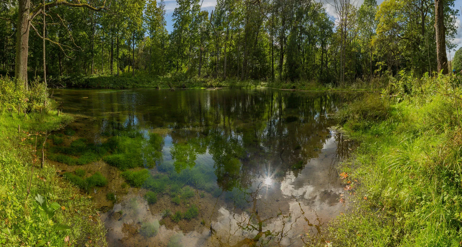 Четвёртый участок заказника – это старинный заброшенный парк, разбитый вокруг карстовой воронки с ключами. Сток воды из воронки перекрыт искусственной плотиной, за счёт чего образован небольшой пруд со сбегающим из-под плотины маленьким водопадом, дающим начало р. Велькотке. В парке растут старые дубы, ясени, липы, клёны и другие деревья. В деревне располагалось родовое имение Блоков и парк был его частью.