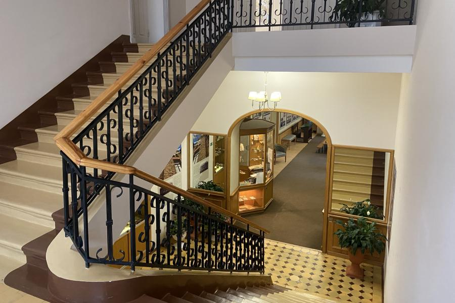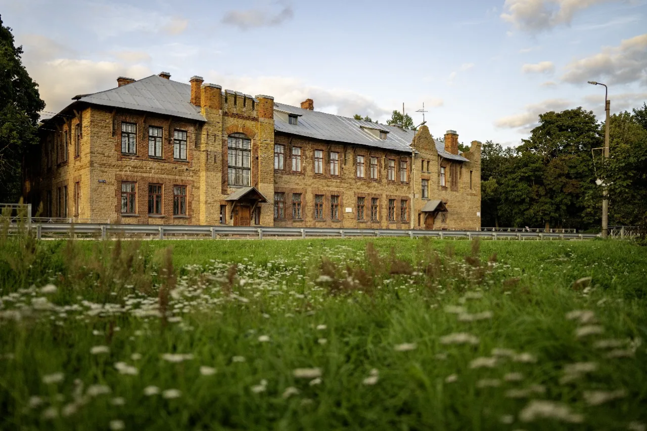 29 августа 1910 г. первая часть здания была торжественно открыта. Здание выстроено из местного плитняка. Оригинальная архитектура в стиле модерн, башенки на фронтоне и флюгер с датой «1909 г.» придают неповторимый облик одному из старых зданий города.